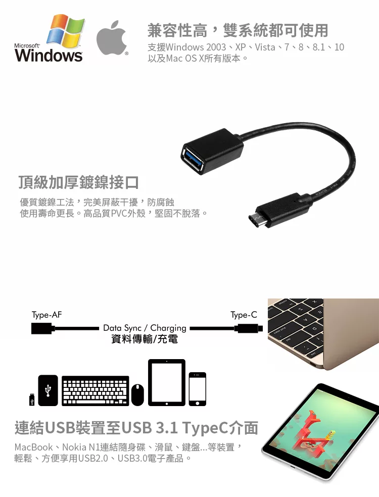 iSee USB 3.1 TypeC to USB 3.0 TypeA OTG轉接傳輸線(IS-CF31 )![]()