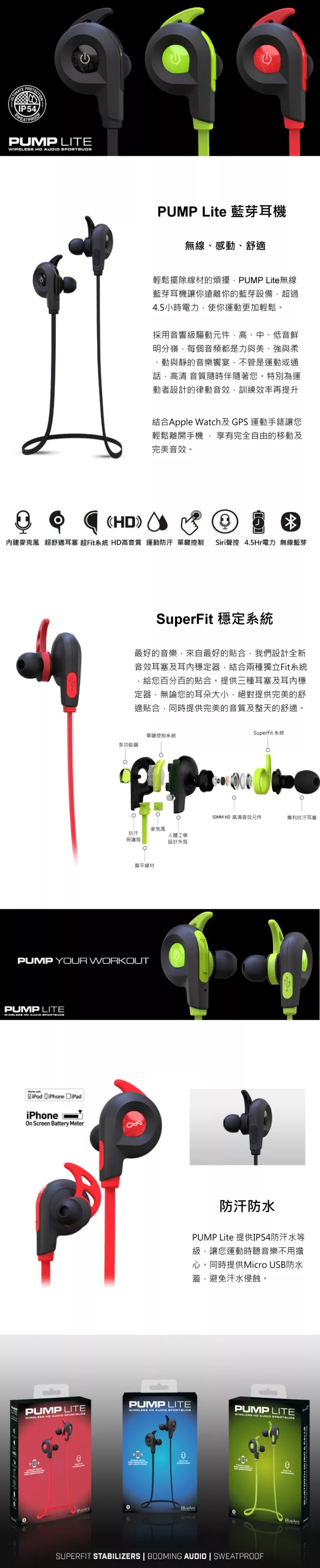 PUMP Lite 運動藍芽耳機-無線、動感、舒適